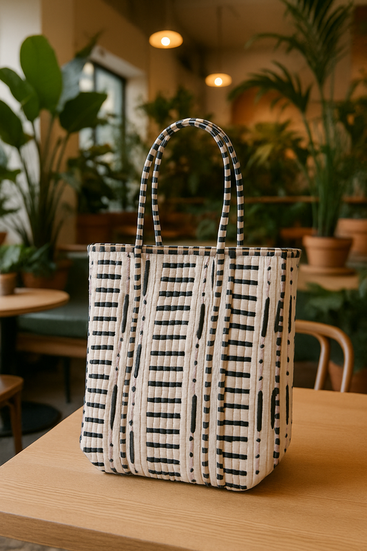 Chic in stripes white tote (With Zipper)