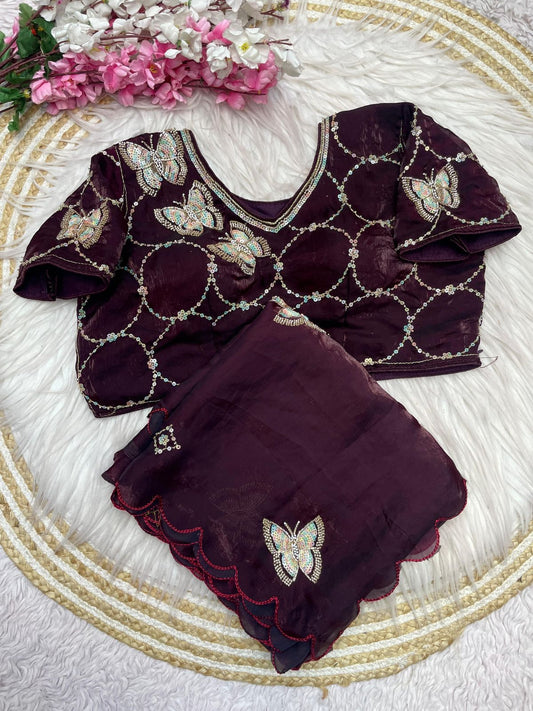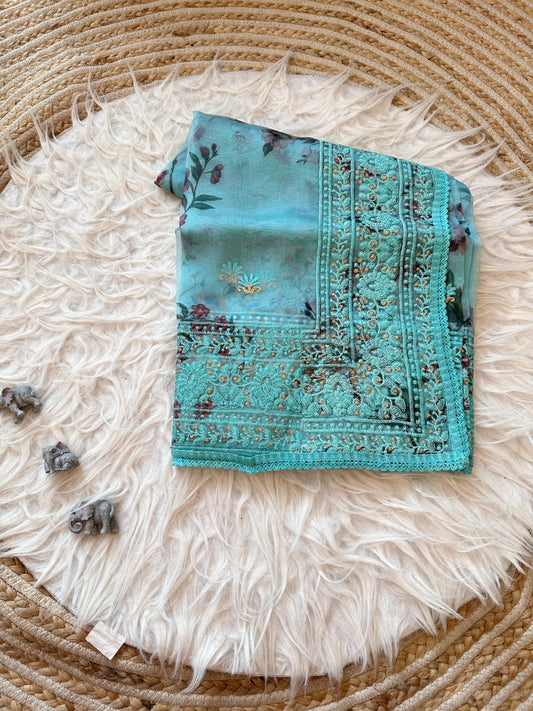 Organza Silk Saree With Chikankari and Zari Work