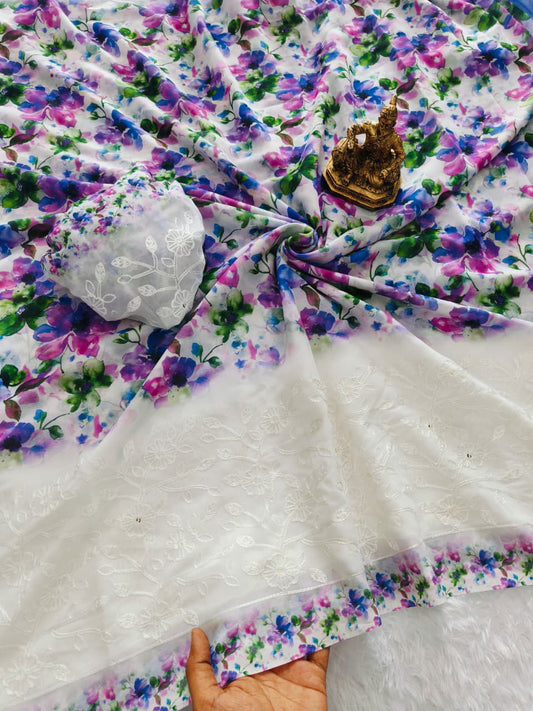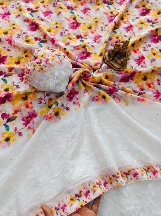 Floral Print Georgette Saree
