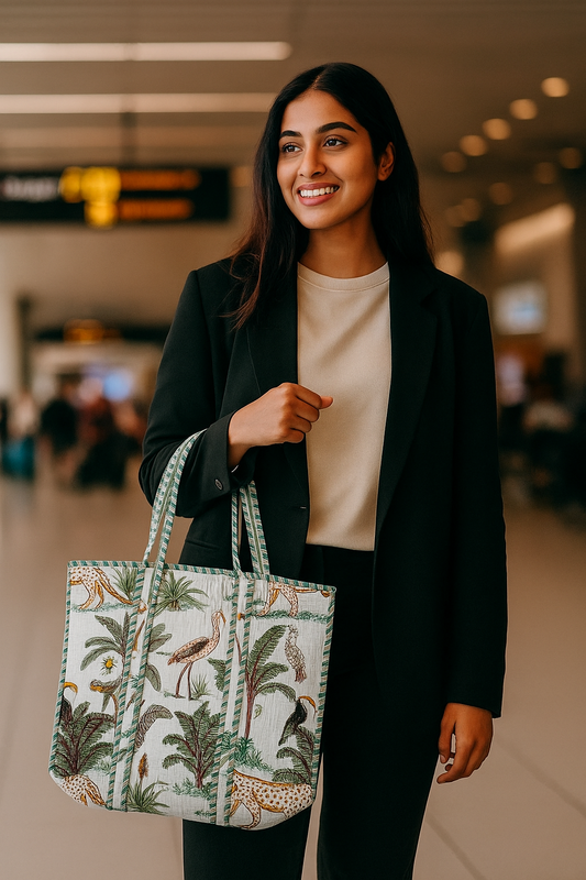 Beige Jungle Safari Tote (With Zipper)