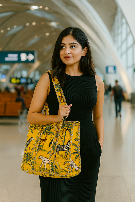Yellow Jungle Safari Tote and Pouches (With Zipper)