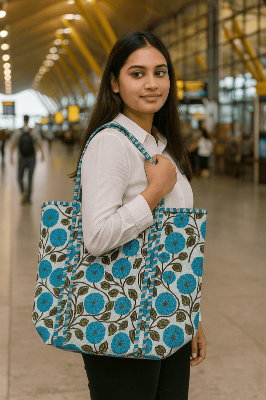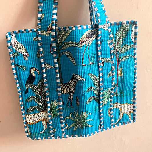 Handblock Printed Quilted Tote Bag with concealed zip ( 17x18x 6 inches)