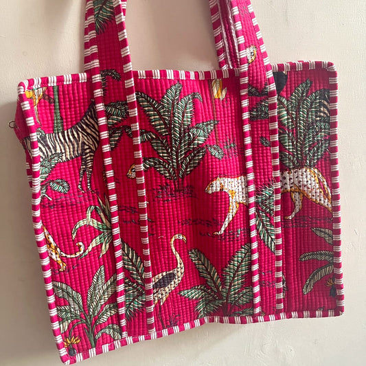 Pink Jungle Safari Tote (With Zipper)