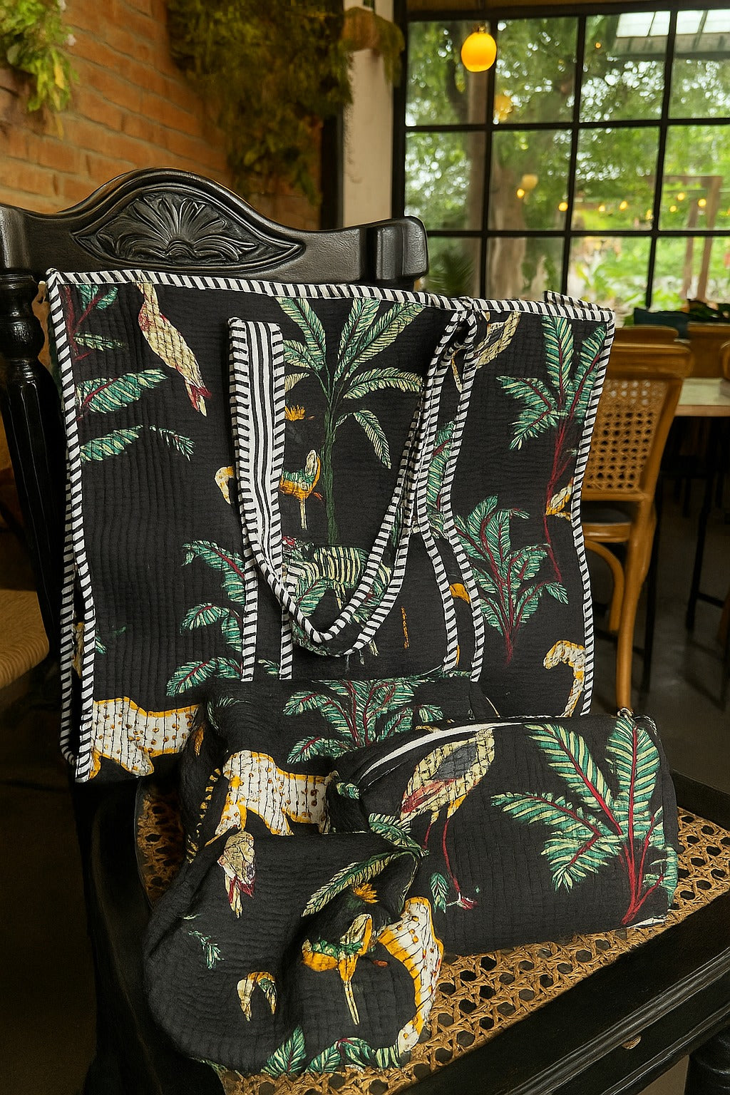 Black Jungle Safari Tote and Pouches (With Zipper)